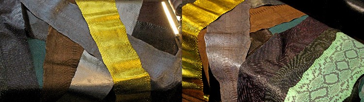 原皮から鞣しの工程で、蛇の模様を抜くか残すかを決定してその後に染色工程に入ります。