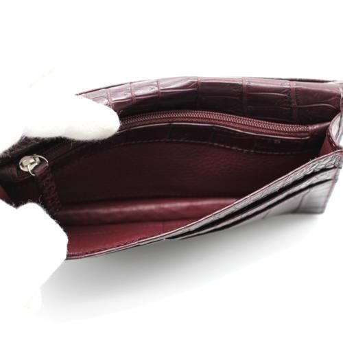 高級なナイルクロコダイルをアウターに一枚革で使用、インナー収納部も全てクロコダイルを使用した“無双仕様”だけでなく、芯材も使わずにクロコダイルとラム革を貼り合わせた絶妙な柔らかさと丈夫さを実現。