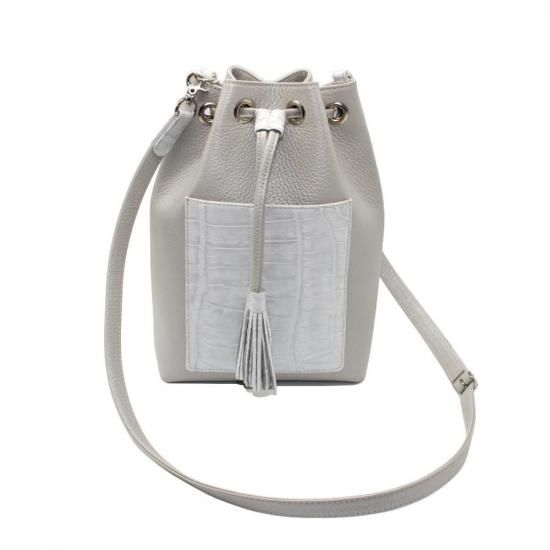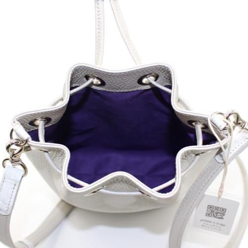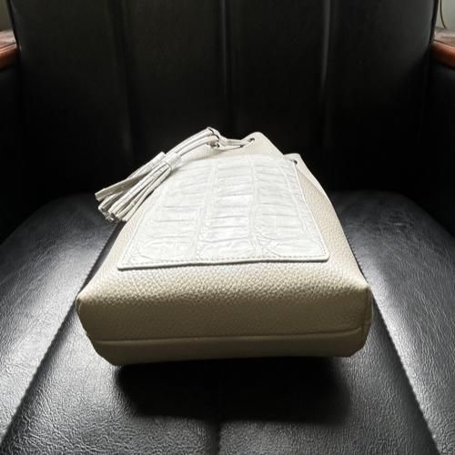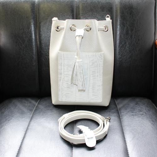クロコダイル巾着ショルダーバッグ/ホワイトパール