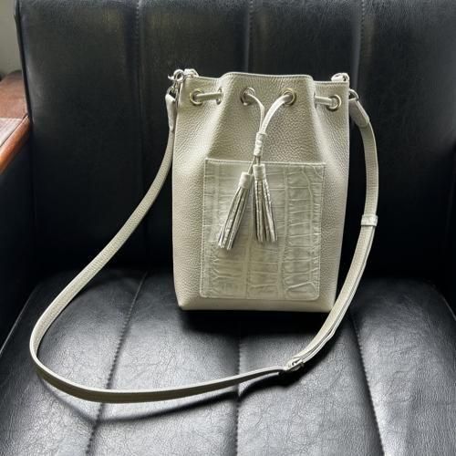 クロコダイル部分使いの巾着ショルダーバッグ
