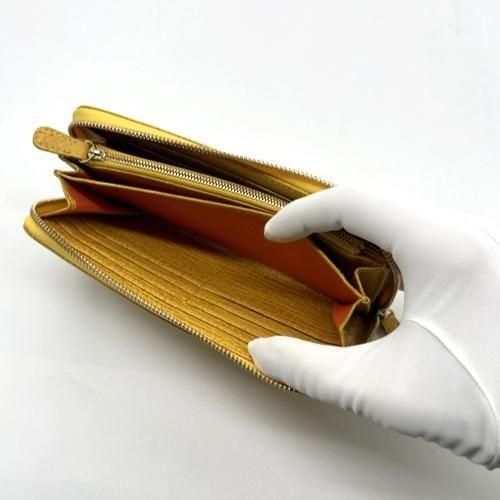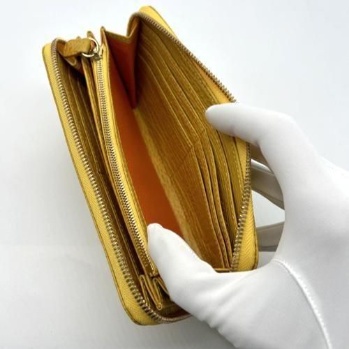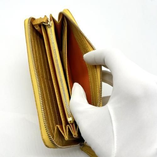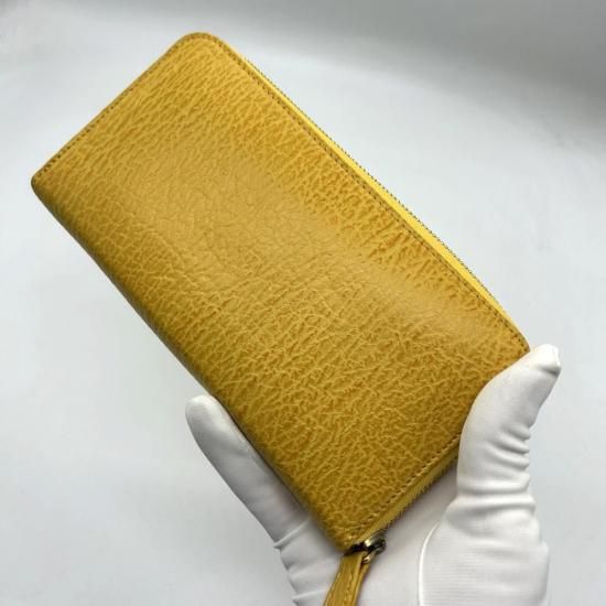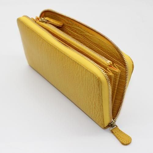 ラウンドファスナー長財布オールレザー/シャークマットイエロー